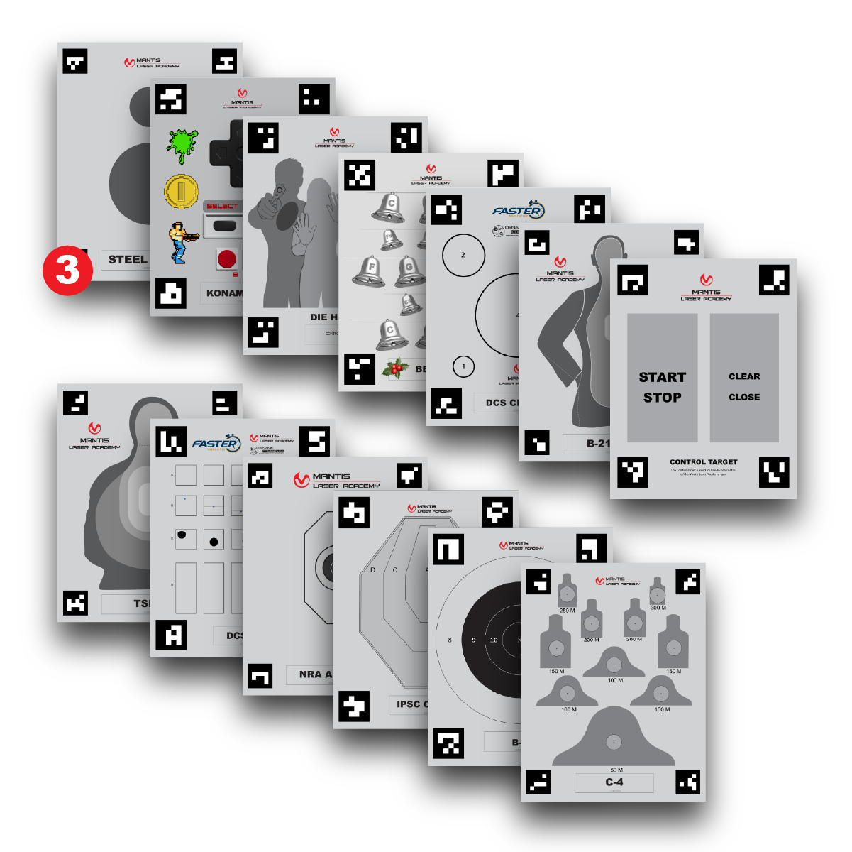 A full set of Laser Academy smart targets, designed specifically for automatic detection, and automatic shot scoring. Designed for use in the Mantis Laser Academy... View full product details