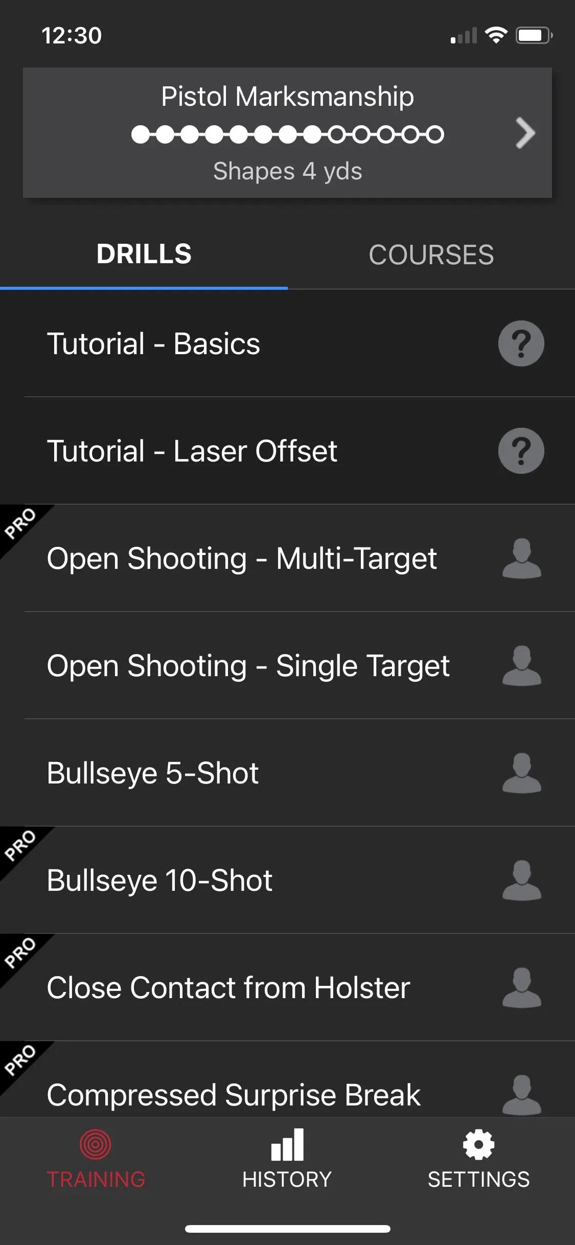 Step 6: Open the Laser Academy app > Training tab > select a Drill from list of available options found under the TRAINING tab.
