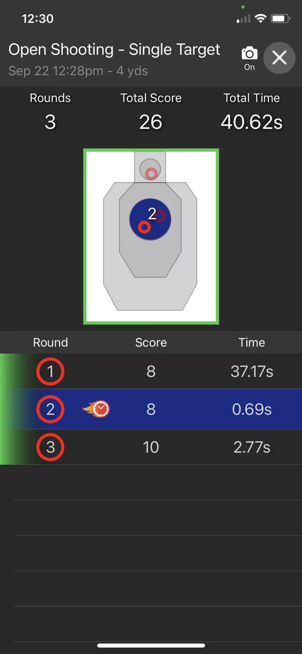 Stopping the drill saves the results of your shooting in a session. A review of the session results will display after the drill is stopped. You can also view sessions in the HISTORY tab.